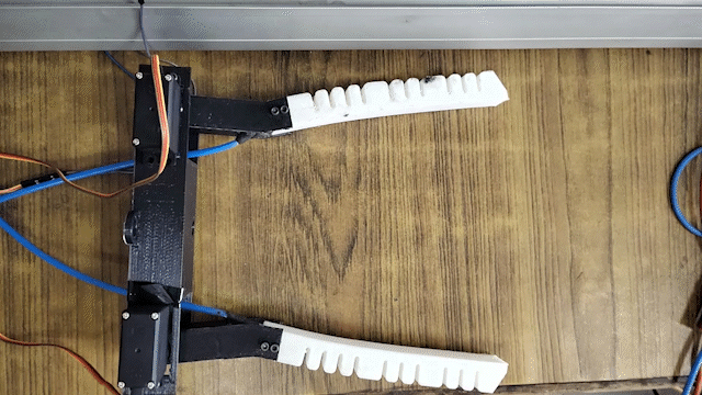 The gripper has two finger-like soft pneumatic actuators and a rigid 3D-printed base. Each actuator has a servo-controlled 1 DoF joint to provide an extensive range of motion. A pneumatic control circuit consisting of pressure sensors and solenoid values monitors and controls compressed air flow to the actuators.