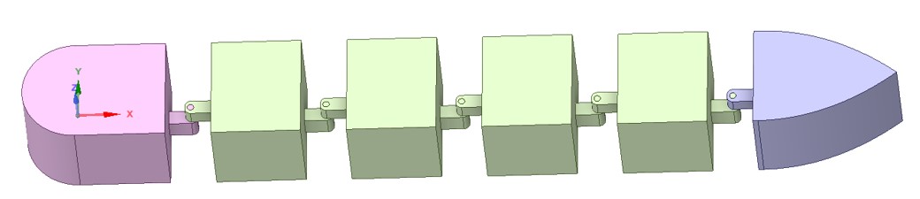 In ANSYS Fluent, the relative motion feature is used to create an effect of a revolute joint in the simulation. UDF scripts were created to assign the angular motion in the CFD simulations, and the input values were calculated by the model as mentioned earlier. A comparative study on the thrust produced by the robot at various parameters like maximum amplitude, frequency, phase lag and the number of links was conducted. CFD models of a single link, two linked robotic swimmers, and a six-linked anguilliform- inspired robots were set up using the concepts discussed above. Inferences on the resulting forces and moments acting on the robot were discussed. A comparison was drawn between the CFD model results and the literature's experimental results. Some inaccuracies were observed, and the diagnosis and methodologies to remove the inaccuracies were discussed. This study was an excellent opportunity to understand the challenges and opportunities of simulating CFD and mathematical models using software tools. I got exposure to turbulent CFD models and their parameters to determine the model's accuracy. I also learned about good practices to follow for better simulation results. Working on multiple iterations using different methodologies in a CFD model made my problem-solving and debugging skills stronger.